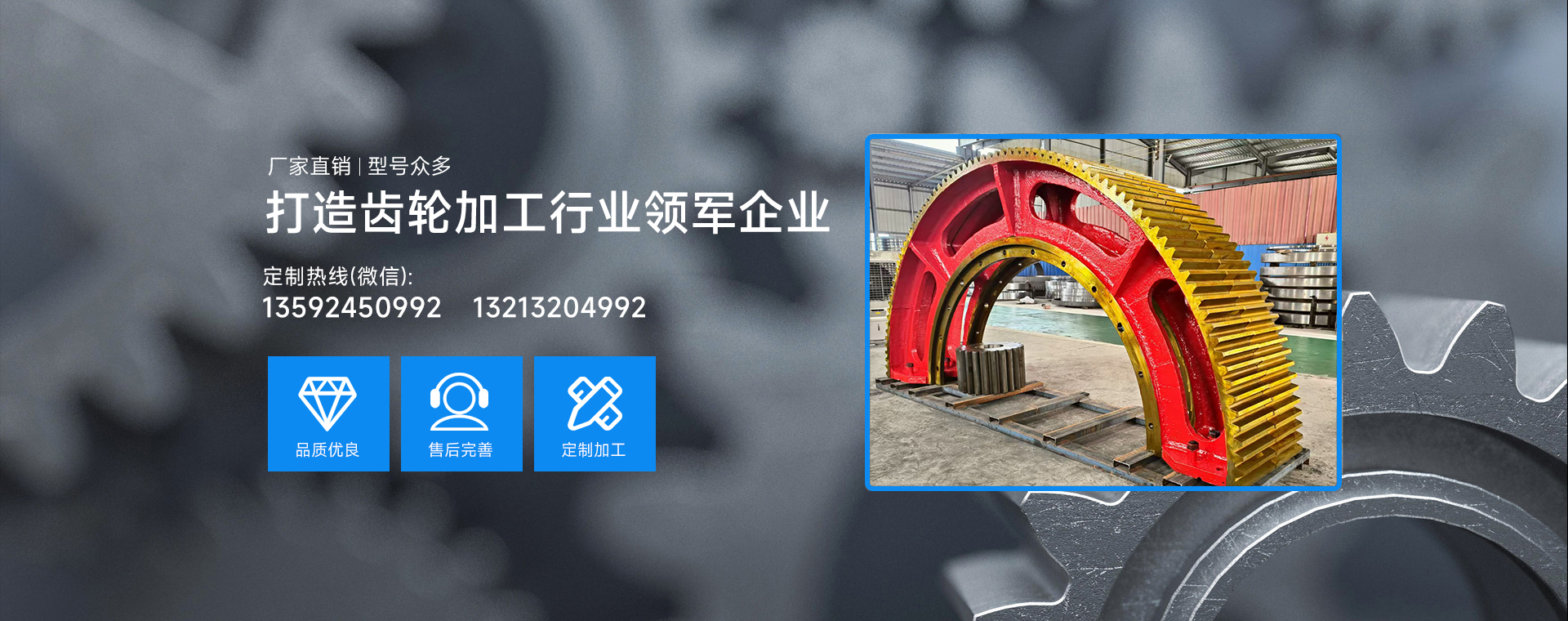 鄭州市政好機械有限公司位于河南省鄭州市滎陽市廣武鎮,成立于2000年初,主營產品有烘干機齒圈、球磨機齒輪、回轉窯大齒圈、大模數齒輪、齒條、鏈輪,內齒輪以及環保、風電、水利設備傳動配件,大型鑄造件的生產與加工。